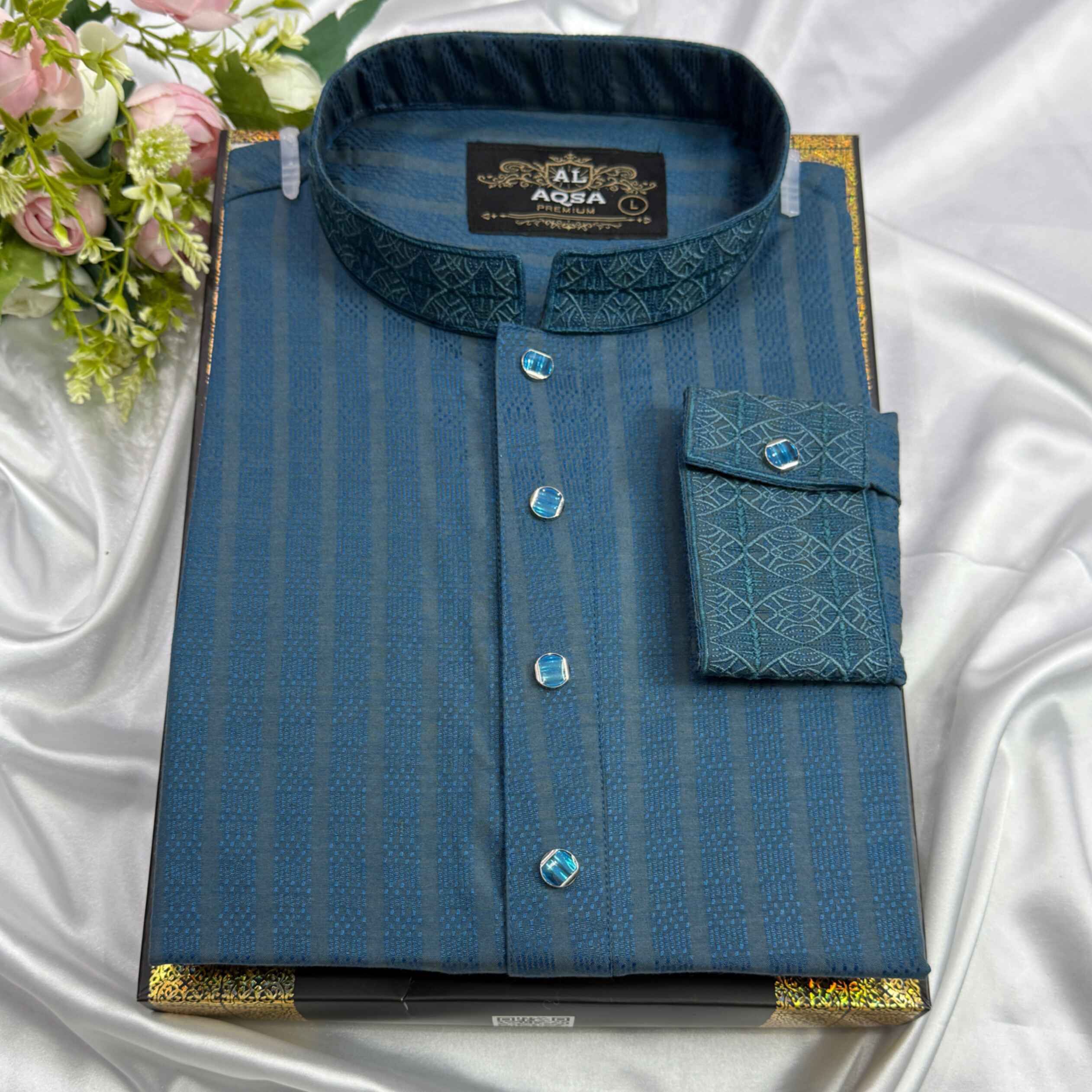 Stripe Cotton Petrol Blue
